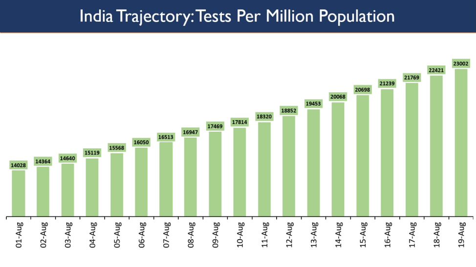 It is only by aggressive testing that positive COVID19 cases can be identified, their contacts tracked and isolated as well as prompt treatment can be ensured through timely medical care. The sustained level of high testing has played a key role in India’s increasing rate of recovery, widening gap between the recovered and active cases, and also progressively declining fatality rate.